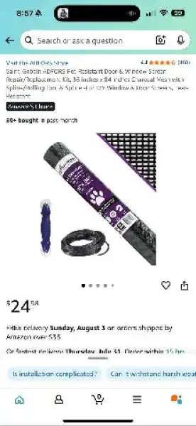 Screen repair kit 36”x84”