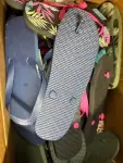 Box of various size flip flops