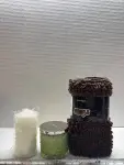 2 candles and bath mat