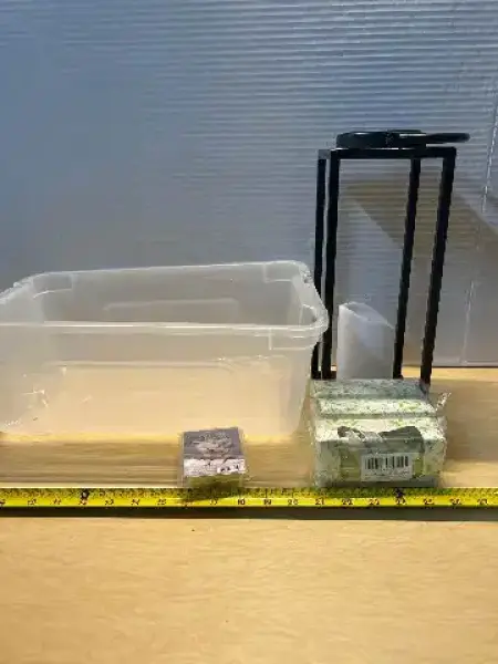 Storage bin, wax melts , salt and pepper shakers and candle light