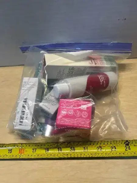 Bag of deodorant and facial cleansers