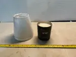 Lamp shades (2) and candle