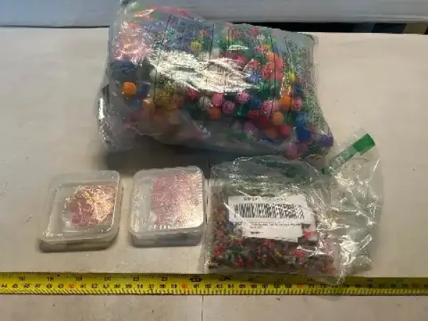 Colorful gel balls, letter pendants and Pom Pom balls