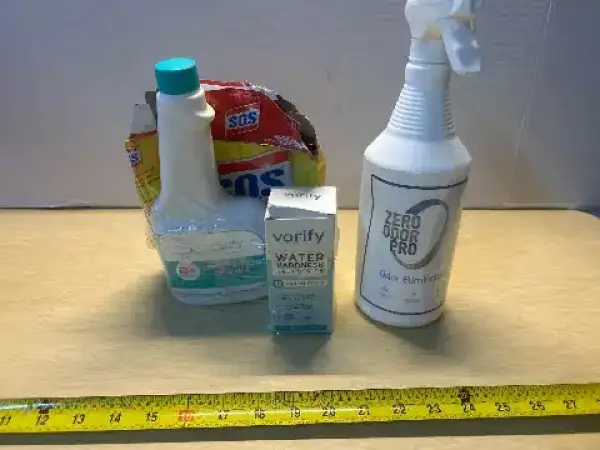 Scrubbing pads,water hardener test strips, multi surface cleaner and odor eliminator