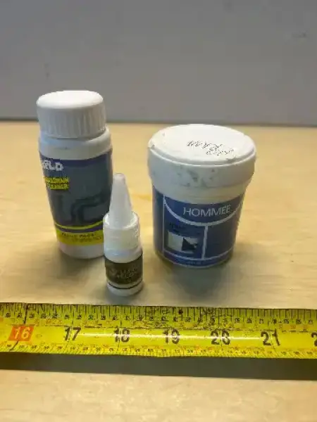 Sink and drain cleaner, drywall repair putty and developer