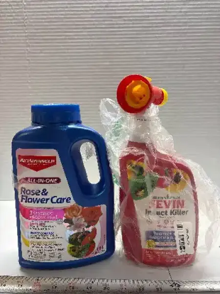 Rose and flower care and sevin insect killer