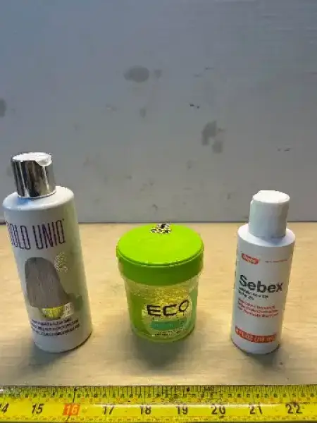 Purple conditioner , hair gel and medicated shampoo