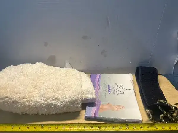 Bath mat, foot peeling mask and exfoliating back scrubber