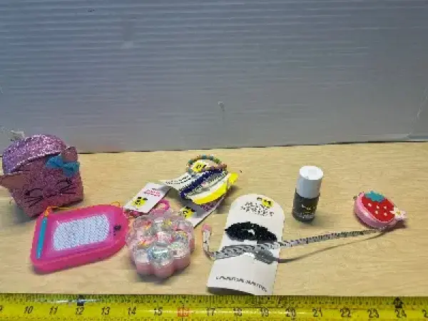 Kids purse, sketch pad , rings, bracelets and hair barrettes (2)