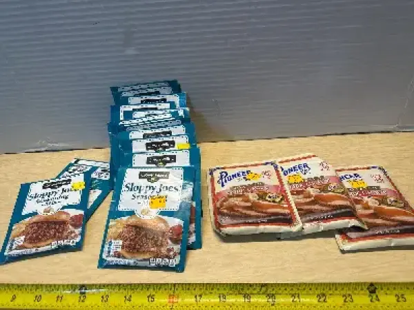 Sloppy Joe seasoning mix (14ct)(09/11/26) and pork gravy mix (3)(04/08/26)