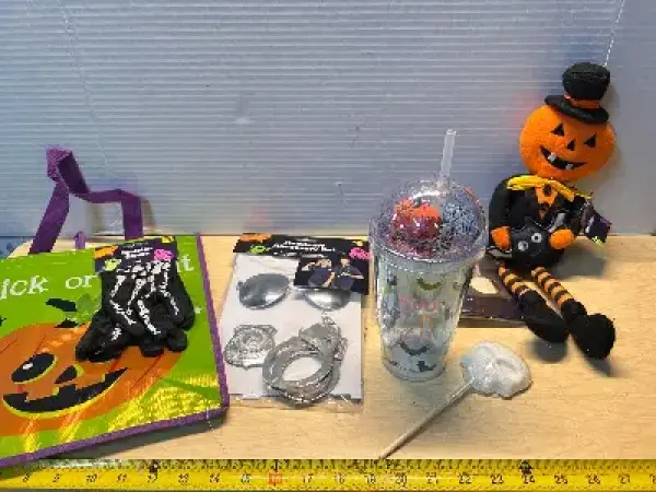 Trick or treat bag (tumbler, sucker, handcuff accessory set, cloth decor and shelf sitter