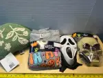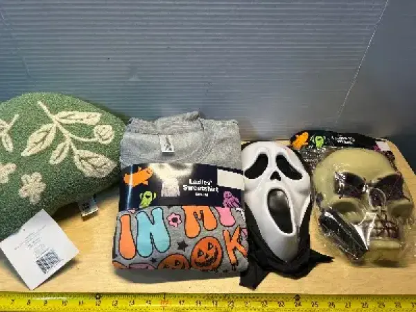 Toss pillow, ladies sweatshirt (M) and masks (2)