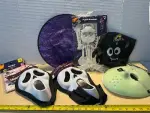 Gift bags (2pks), scream masks (2), witch hat, Skelton decorations and Jason masks (6ct)