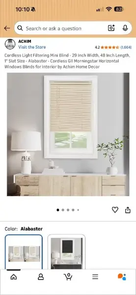 Cordless 1” vinyl mini blind 29”wx48”l