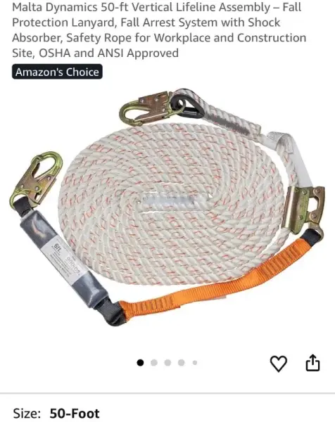 50’ vertical lifeline assembly rope