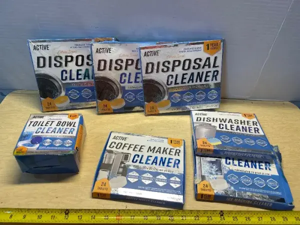 Garbage disposal cleaner(3), toilet bowl cleaner , coffee maker cleaner and dishwasher cleaner (2)