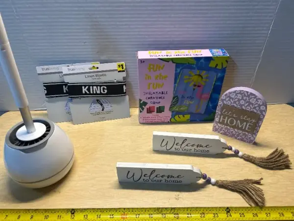Linen elastic (2),inflatable corn hole game, home decorations(3) and toilet brush cleaner