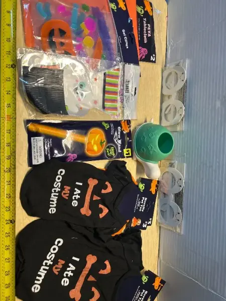 Gel clings, turtle planter, ghost glasses, glow wand and pet outfits (4)(S)(M)