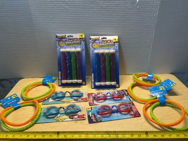 Dive rings and swimming goggles
