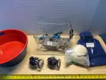 Plastic bins(2), storage container , replacement CPAP head gear , insulated water pouch and more