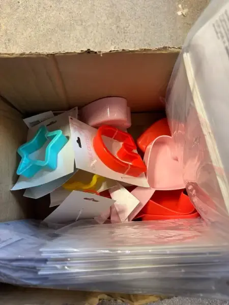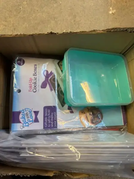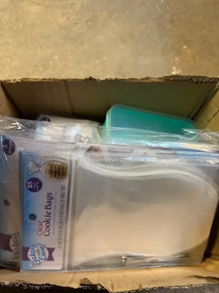 Measuring spoon set. Cookie bags. Fold up cookie boxes. Food picks. Dessert cups with lids. 4 count. Plastic treat box. 3 count. 3.25”x8”x3.25”. 25 count. 5.62”x7.5”