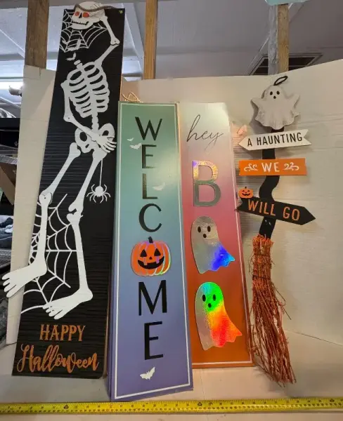 Plaques & Halloween skeleton porch sign decor