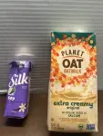 1 qt oatmilk and 5 pack soy milk