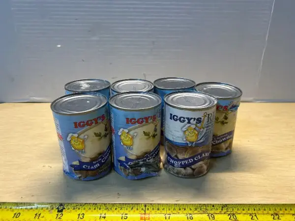 Cans of Clam chowder and chopped clams (exp:08/11/26)