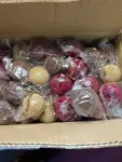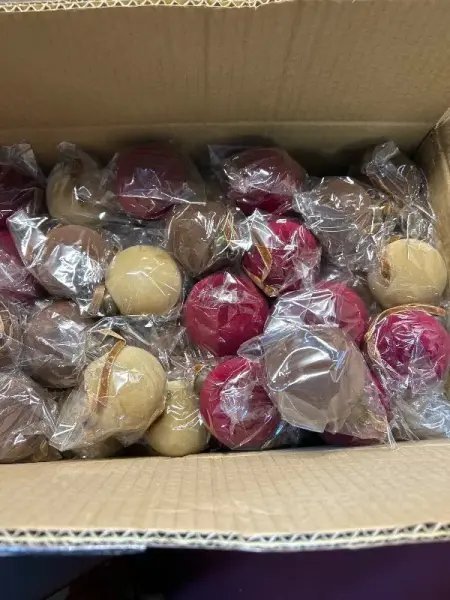 box of velvet ornaments