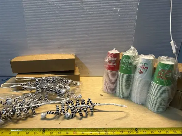 Christmas decorations (18ct) and Christmas paper cups (2pks)