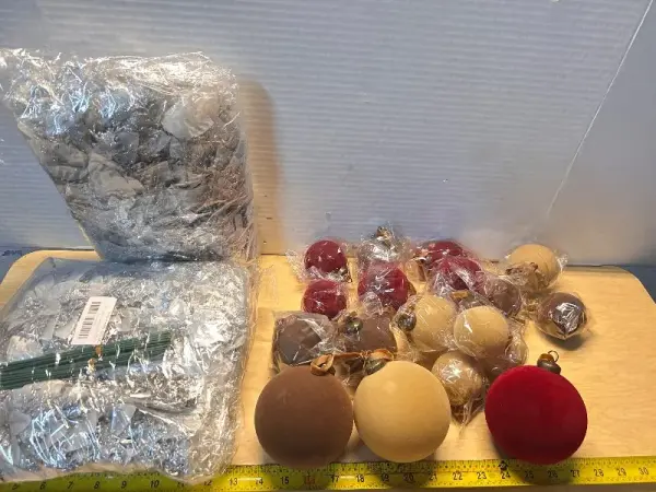 Glitter poinsettia Christmas ornaments and velvet ornaments (18ct)