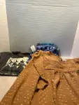 size small blouse, halloween shirt and christmas pajamas