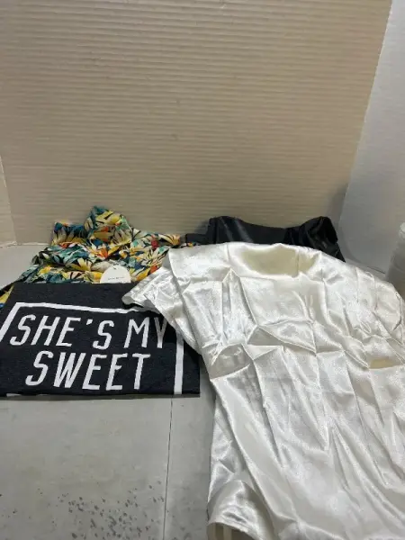 size small faux leather pants , button up , tshirt , dress