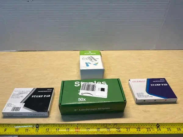 Box of staples ,stamp pads (2) and waterproof cable connecter covers