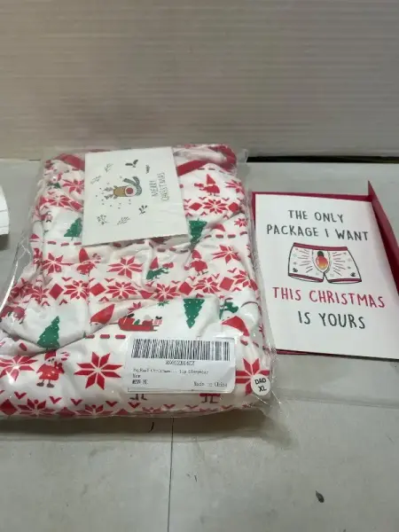 mens XL christmas pjs and christmas card