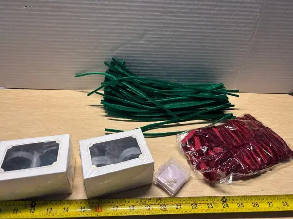 Velvet ribbon, ribbons, clasps and pipe cleaners