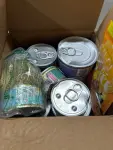 box of assorted cat food