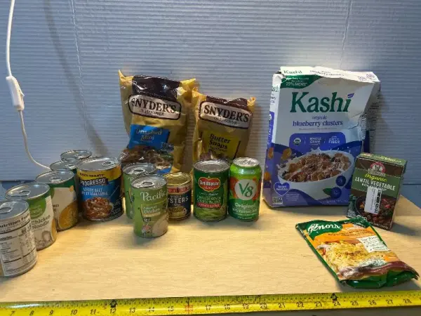 Cereal, canned food and pretzels ( all Indate)