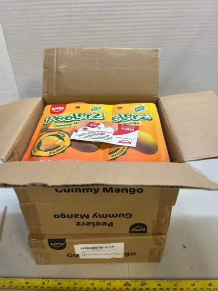 3 boxes of Amos mango gummy peeler candy
