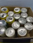 box of various can drinks (mostly in date)
