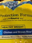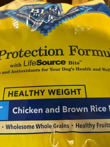 34 pound bag of blue, buffalo life protection, formula, chicken and brown rice recipe, dog food