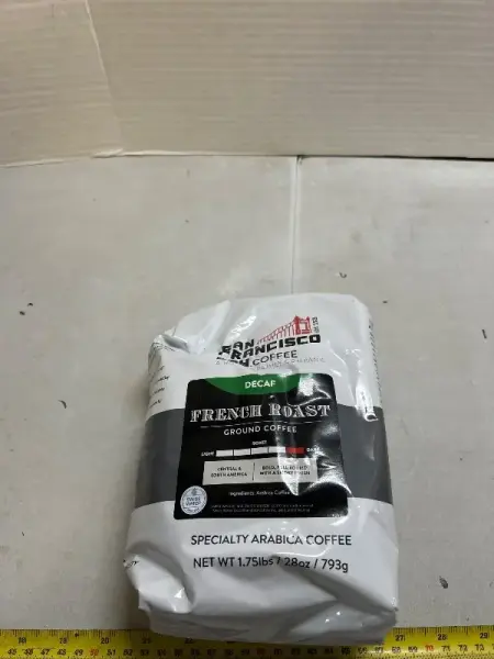 28 ounces of decaf French roast ground coffee, dark roast
