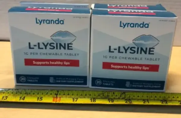 4 boxes l-lysine supports healthy lips 20 chewable tablets each box