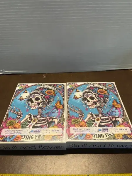 2ct jigsaw puzzle, skull and flower