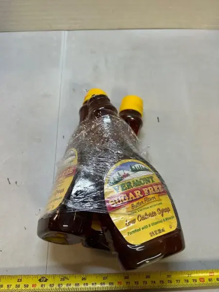 3 12 fluid ounce bottles of sugar-free butter flavor, low-calorie syrup, fortified with six vitamins and minerals one bottle missing cap buy April 2028