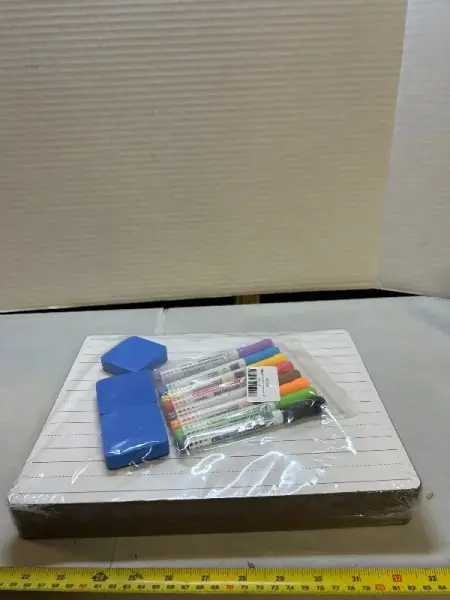 12. Pack of whiteboards three erasers nine dry erase markers.