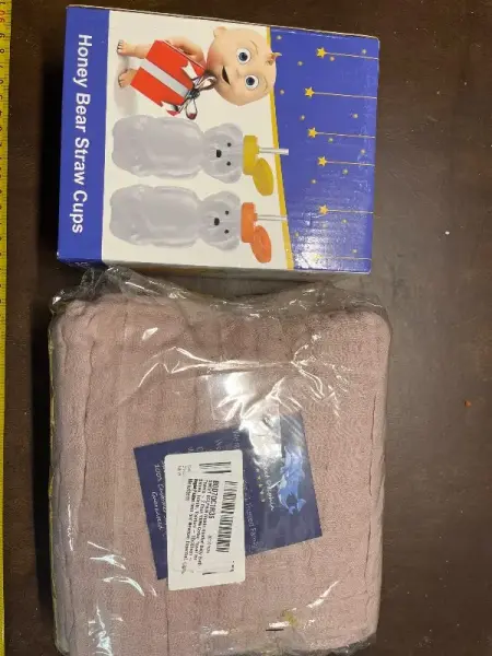 2pack cotton towel for infant baby and toddlers 32 x 32“ , honey bear straw cups