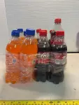 12 bottles of Fanta and cherry Coke, mostly out of date