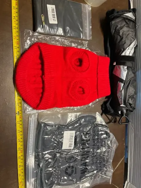 woman’s gloves , medium size pet outfit, wallet for women , umbrella