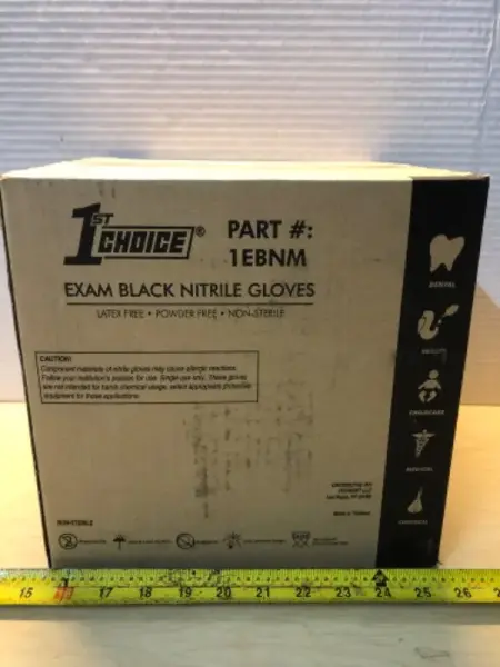 Box of 10 boxes of black latex free gloves 100 gloves per pack